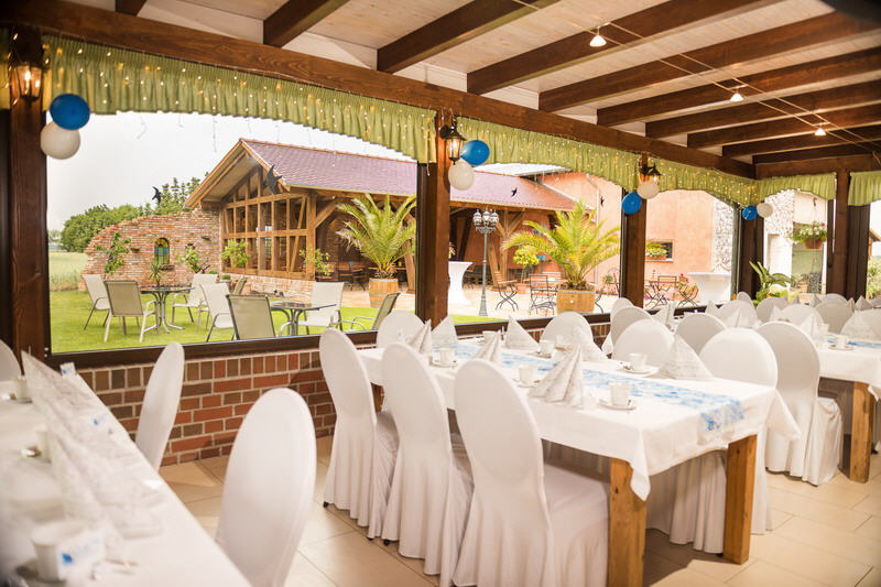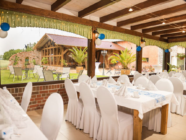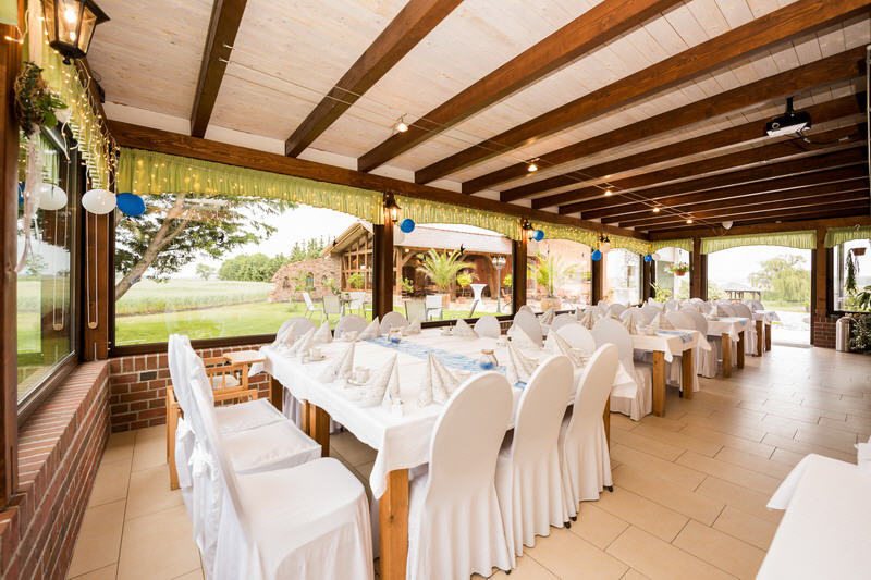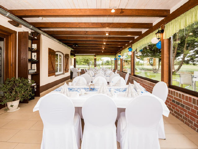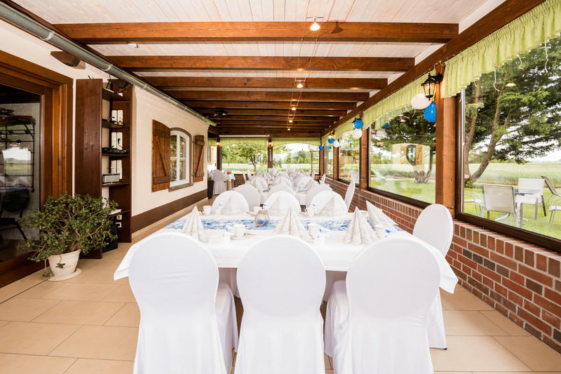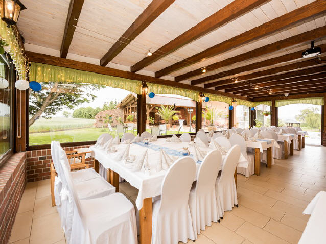 Für Feiern bis ca. 80 Personen stehen im Haupthaus gemütliche Gasträume mit Bar, ein großzügiger Wintergarten und 2 Küchen zur Verfügung.