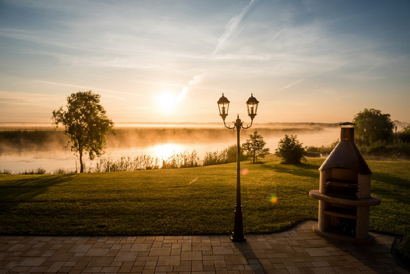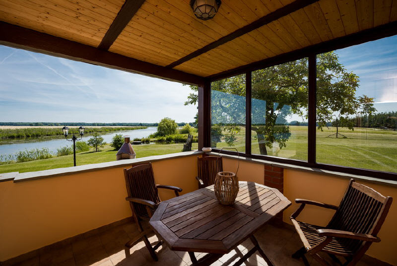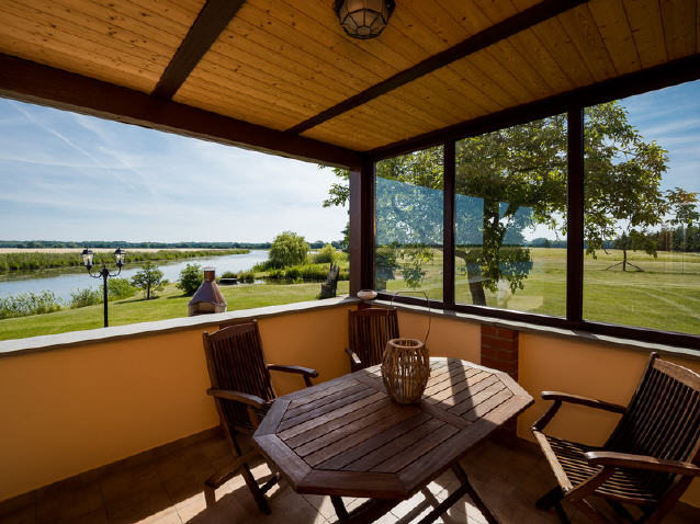 großzügigem Wohnzimmer mit TV und Terasse zum See.