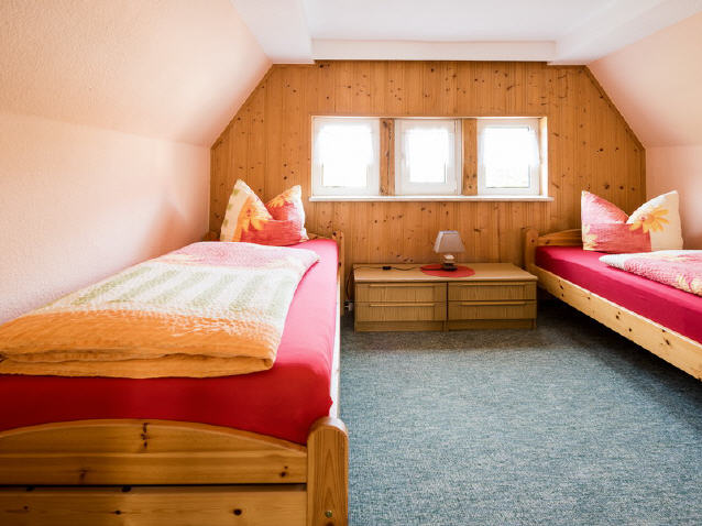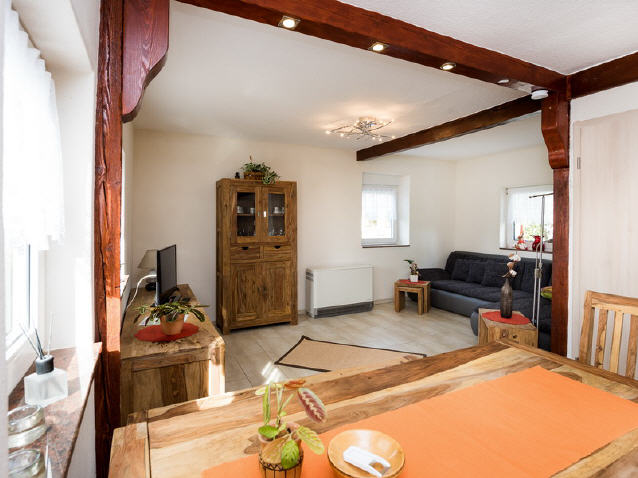 mit zwei Doppelzimmern, Bad, Küche, Wohnzimmer mit TV und Terrasse.